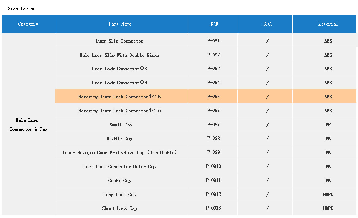 Product Name:JN Components  【Male Luer Connector & Cap】REF P-095