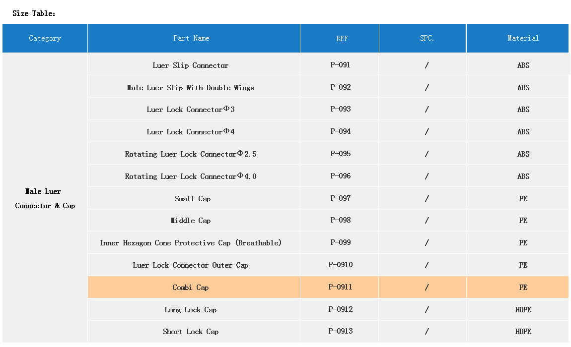 Product Name:JN Components  【Male Luer Connector & Cap】REF P-0911