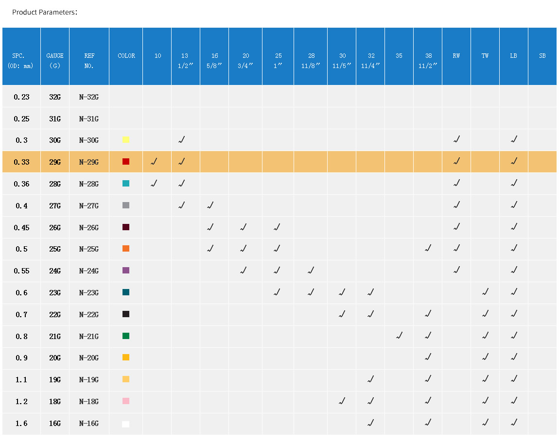 Product Name:Hypodermic needle  REF-N-29G-0.33MM