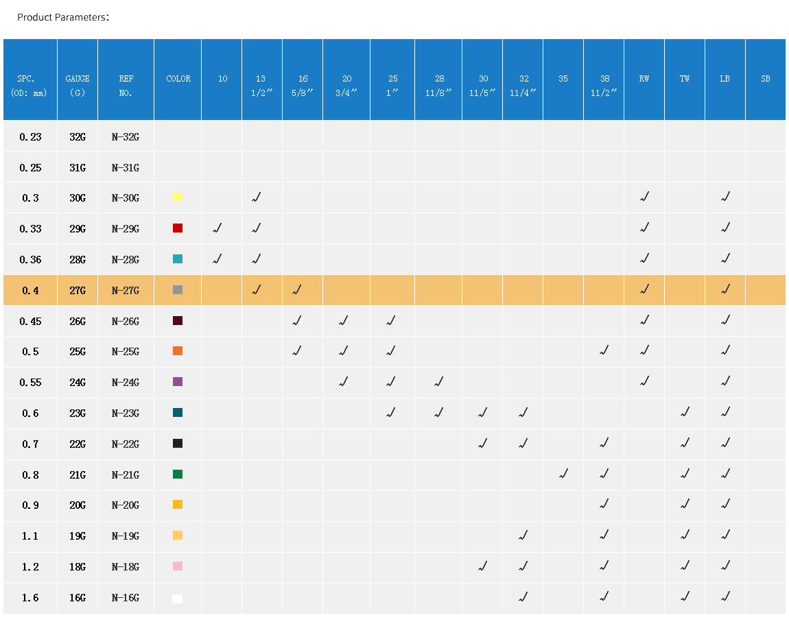 Product Name:Hypodermic needle  REF-N-27G-0.4MM