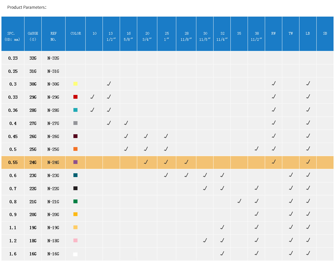 Product Name:Hypodermic needle  REF-N-24G-0.55MM