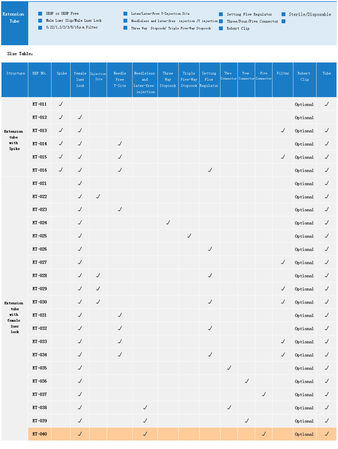 Product Name:Extension tube  REF-ET-040
