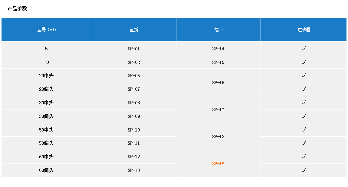 產(chǎn)品名稱:精密過濾溶藥注射器  REF-SP-19