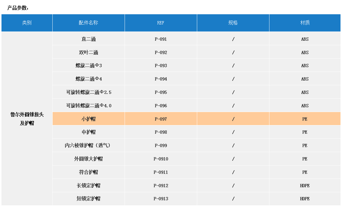 產品名稱:配件  【魯爾外圓錐接頭及護帽】REF P-097