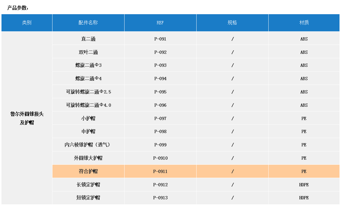 產(chǎn)品名稱(chēng):配件  【魯爾外圓錐接頭及護(hù)帽】REF P-0911