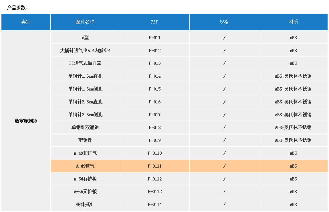 產品名稱:配件  【瓶塞穿刺器】REF P-0111