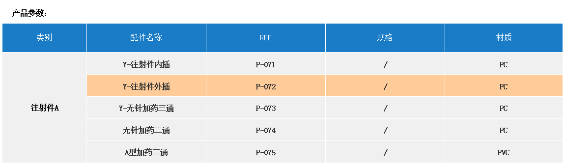產(chǎn)品名稱:配件  【注射件A】REF P-072